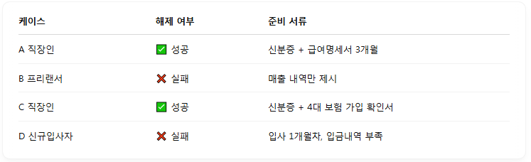 정확한 기준은 없지만, ‘급여 입금 명확성’과 ‘회사명’이 입금 내역에 찍히는지 여부가 핵심 판단 포인트입니다.
