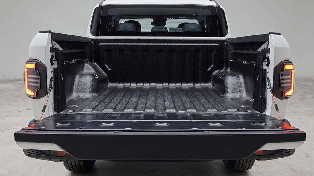 기아 타스만의 외관은 픽업트럭답게 강렬하면서도 세련된 인상을 줍니다. 전면부는 대담한 그릴과 날카로운 헤드램프 디자인이 특징이며, 후면에는 넓은 적재 공간과 실용적인 형태의 디자인을 채택하여 실용성을 강화했습니다. 차량의 전체적인 라인은 날렵하고 현대적인 느낌을 주어, 강력한 존재감을 발산합니다.