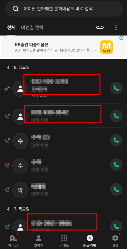 - 휴대폰의 전화 앱을 열고 '최근 통화 기록'을 확인하세요.