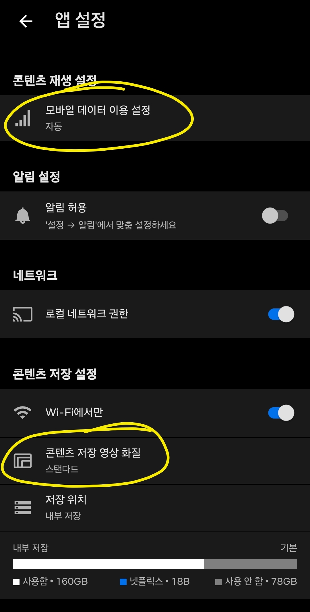 앱 설정에서 콘텐츠 저장 영상 화질을 "스텐다드"로 낮추면 고화질보다 용량을 훨씬 덜 차지해요. "Wi-Fi에서만 다운로드" 켜두면 데이터 요금 걱정도 줄어듭니다. - 파일 관리 꿀팁: