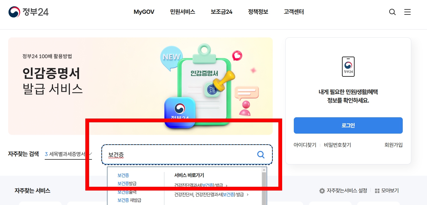 보건증 인터넷 재발급 방법 (정부24 이용)