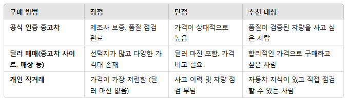 중고차 어디서 사야 할까? (딜러, 직거래, 인증 중고차 비교)