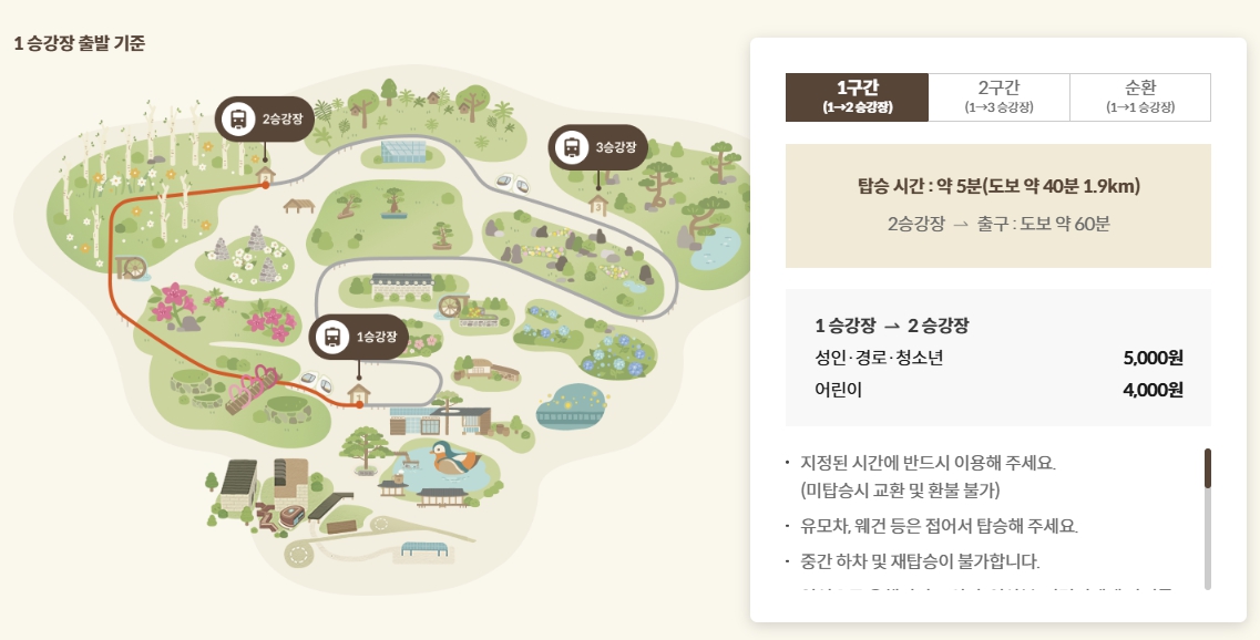 ✔ 포인트: 모노레일을 이용하면 단풍나무원까지 빠르게 이동할 수 있습니다.