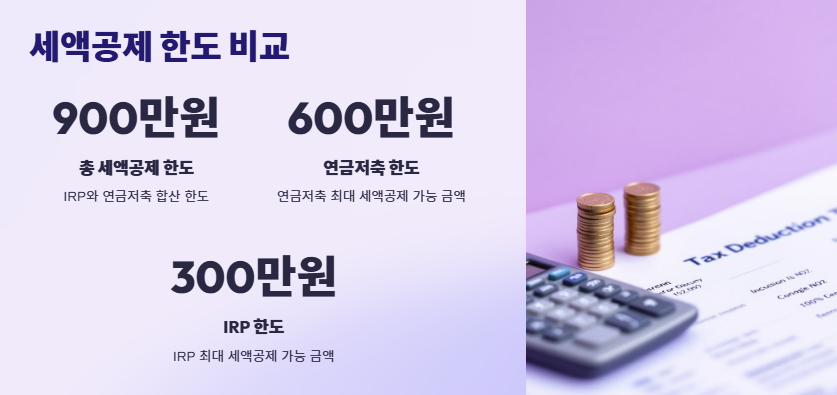 세액공제 한도는 두 상품을 비교할 때 중요한 포인트입니다. IRP와 연금저축은 세액공제 한도가 합쳐서 900만 원까지 가능하다는 공통점이 있어요. 하지만 개별적으로 세액공제 한도에 차이가 있답니다.