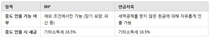 예기치 못한 상황에서 자금을 중도에 인출해야 할 수도 있죠. 이때 IRP와 연금저축은 각기 다른 규정을 가지고 있어요.